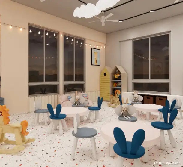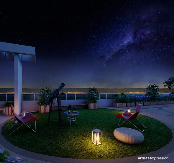 At Aros by Life Republic amenities include a swimming pool, Floating Fitness Studio, Cabana, pet park, kids' play area, Sky Bridge, and more.